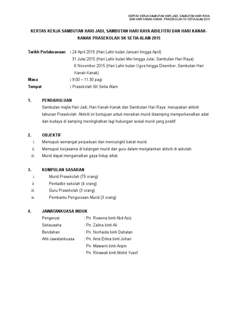 Himpunan kertas kerja sambutan hari raya aidilfitri peringkat sekolah ini dihimpunkan khas untuk anda semua menjelang hari raya aidilfitri yang bakal tiba. Save Save Kertas Kerja SAMBUTAN HARI LAHIR Pertama For Later. This is why we provide the books compilations in this.